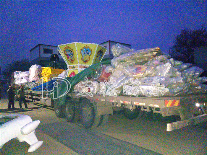 昨天,河北客戶訂購的8臂自控飛機和16座豪華黄瓜视频成人污下载裝車,在天黑時裝好發貨。安裝師傅今早已經趕往場地,再過幾天安裝調試好就可以投入運營了。