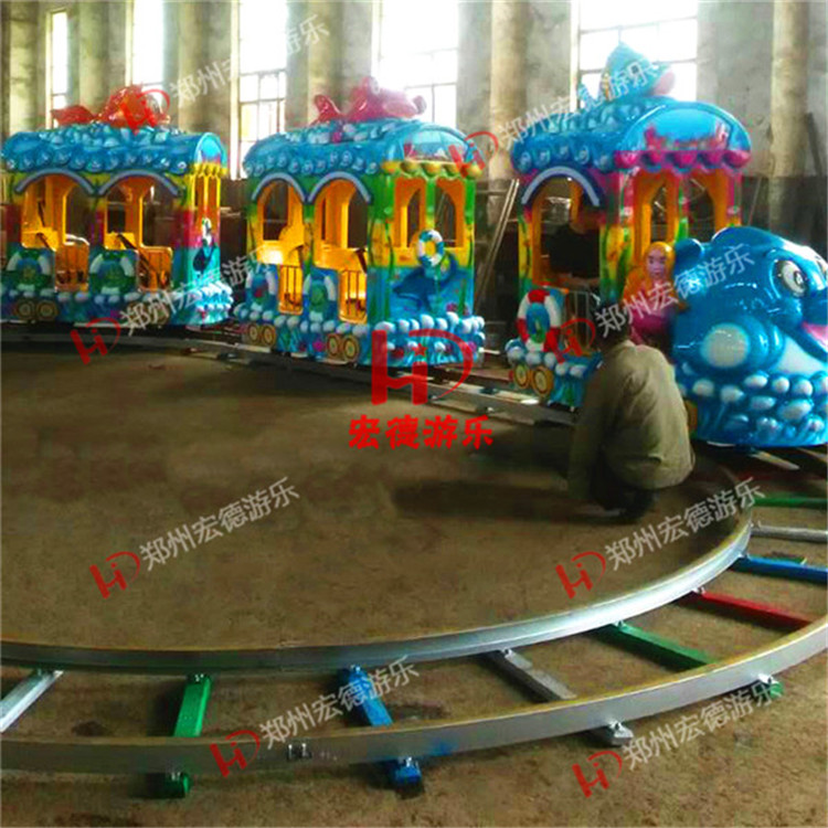上圖的軌道小火車是宏德遊樂為國外客戶量身定製的加長型軌道火車,軌道全長750米,途徑2處有坡度的隧道,三處大轉彎,還要實現軌道兩端的原地調頭,以及火車整體的全自動控製。宏德遊樂技術和生產研究討論後,製定方案,從軌道製作、控製係統、導電方式、變壓器數量和位置、調頭方法等一係列細節,工期緊張,工人們連續加班數周後,完美收工。這套火車光軌道就有110餘節,三個40尺高櫃裝的滿滿當當,終於在春節前發出。目前貨櫃已經抵達安裝地。