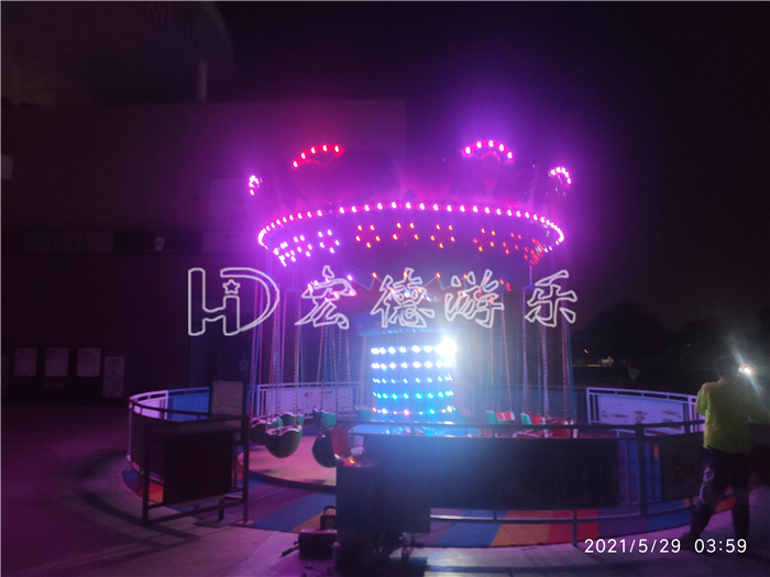 宏德遊樂生產的飛椅吊鏈均用彩色的熱塑管包裹,美觀的同時,也防止鐵鏈傷人,安全又好看。水果飛椅價格